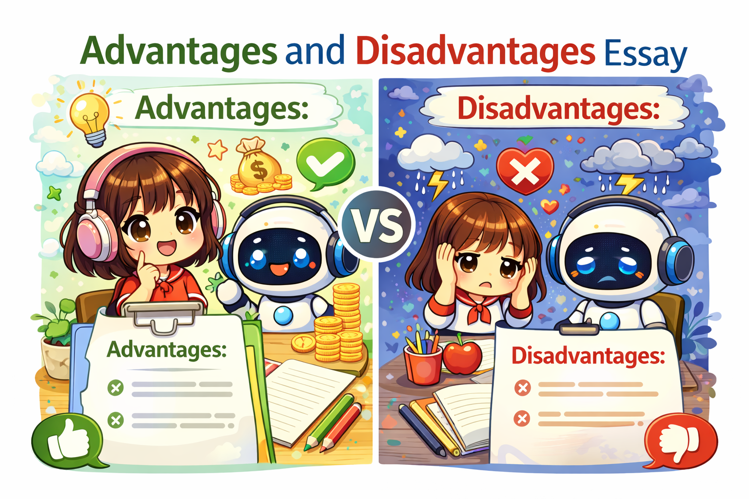 - Từ vựng đa dạng (đặc biệt là từ đồng nghĩa của advantage/disadvantage).