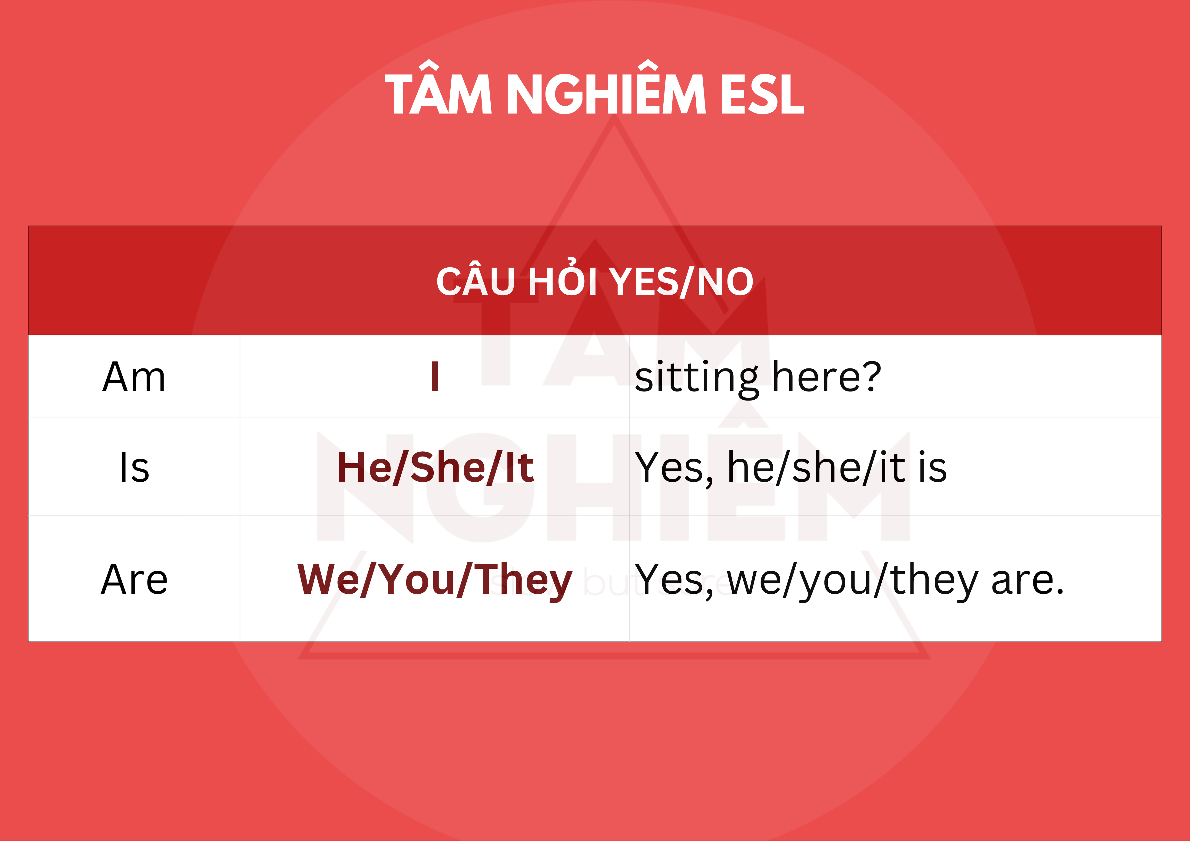 - Động từ to be (am/is/are) luôn được đặt trước chủ ngữ