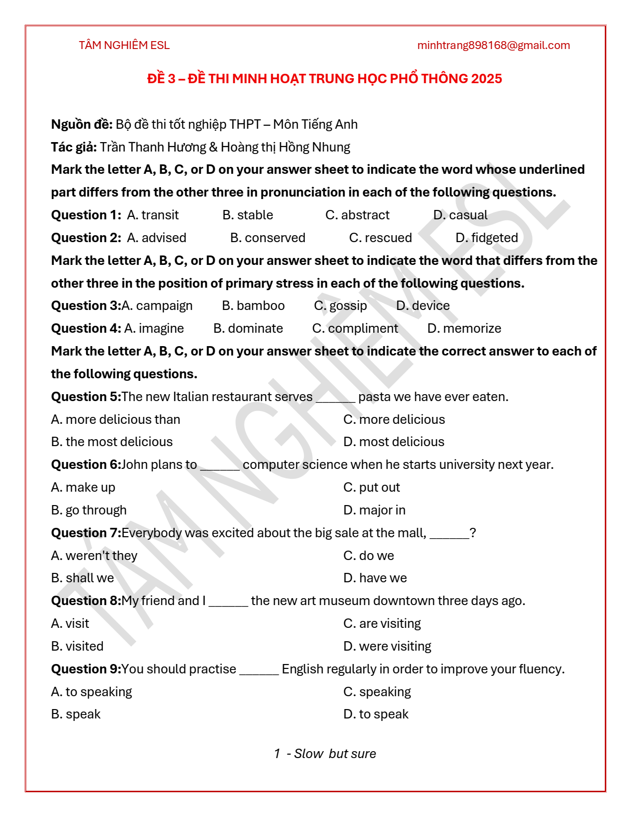 Học sinh khi luyện đề này sẽ rèn được kỹ năng làm bài, tư duy ngữ cảnh và khả năng đọc hiểu, không chỉ học thuộc ngữ pháp rời rạc.