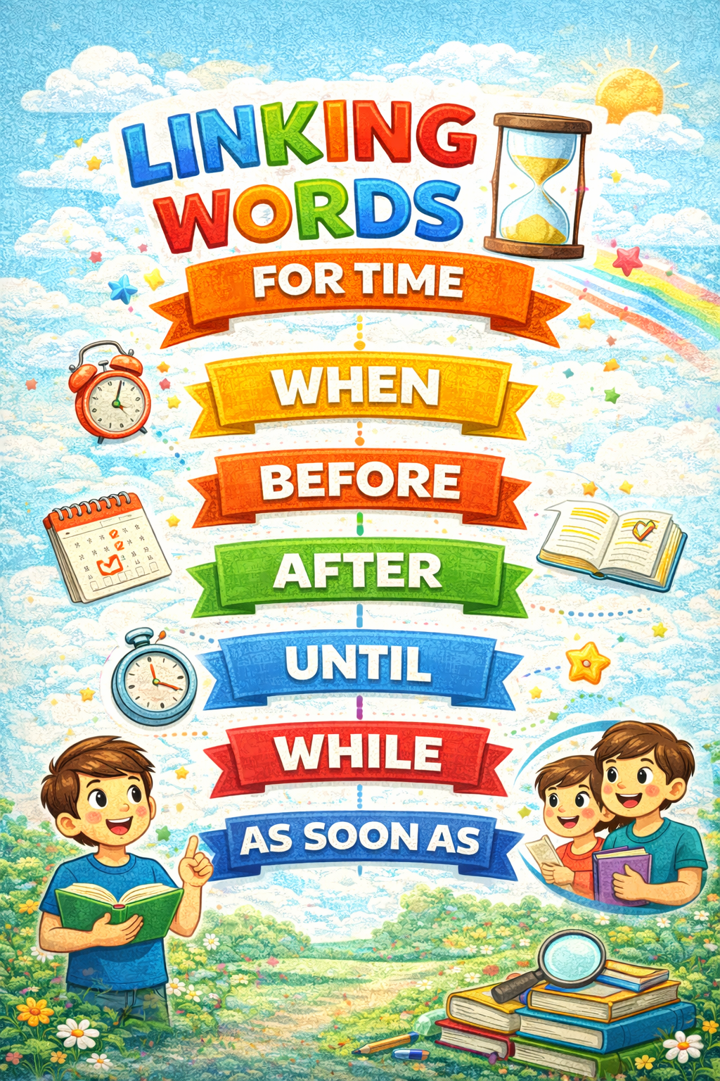 Linking words for time là những từ hoặc cụm từ dùng để chỉ thời điểm, khoảng thời gian hoặc thứ tự xảy ra của các hành động/sự kiện. Trong tiếng Anh, chúng thường đứng ở đầu mệnh đề phụ hoặc giữa câu để kết nối với mệnh đề chính.