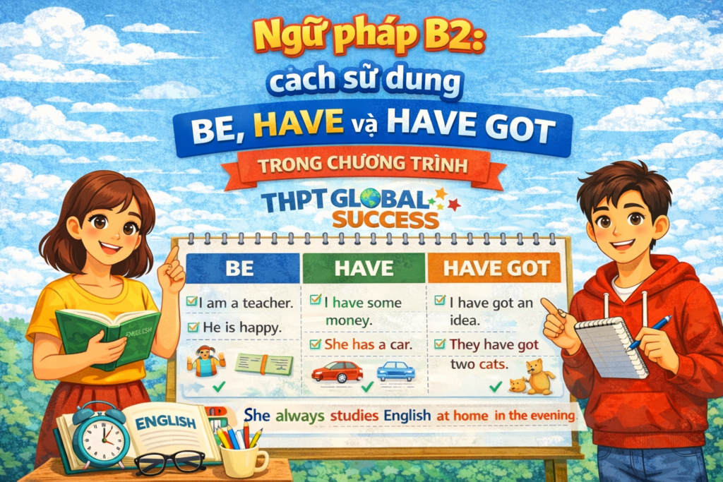 Ba động từ be, have và have got là những động từ cơ bản nhưng có tần suất sử dụng cực cao trong tiếng Anh. Chúng không chỉ xuất hiện trong giao tiếp hằng ngày mà còn đóng vai trò quan trọng trong văn viết học thuật, bài thi quốc tế và tiếng Anh chuyên ngành. Việc sử dụng chính xác ba động từ này giúp người học xây dựng câu đúng ngữ pháp, tự nhiên về ngữ dụng và phù hợp với từng ngữ cảnh giao tiếp. Đây là nền tảng không thể thiếu để đạt được global success trong quá trình học và sử dụng tiếng Anh lâu dài. (1)